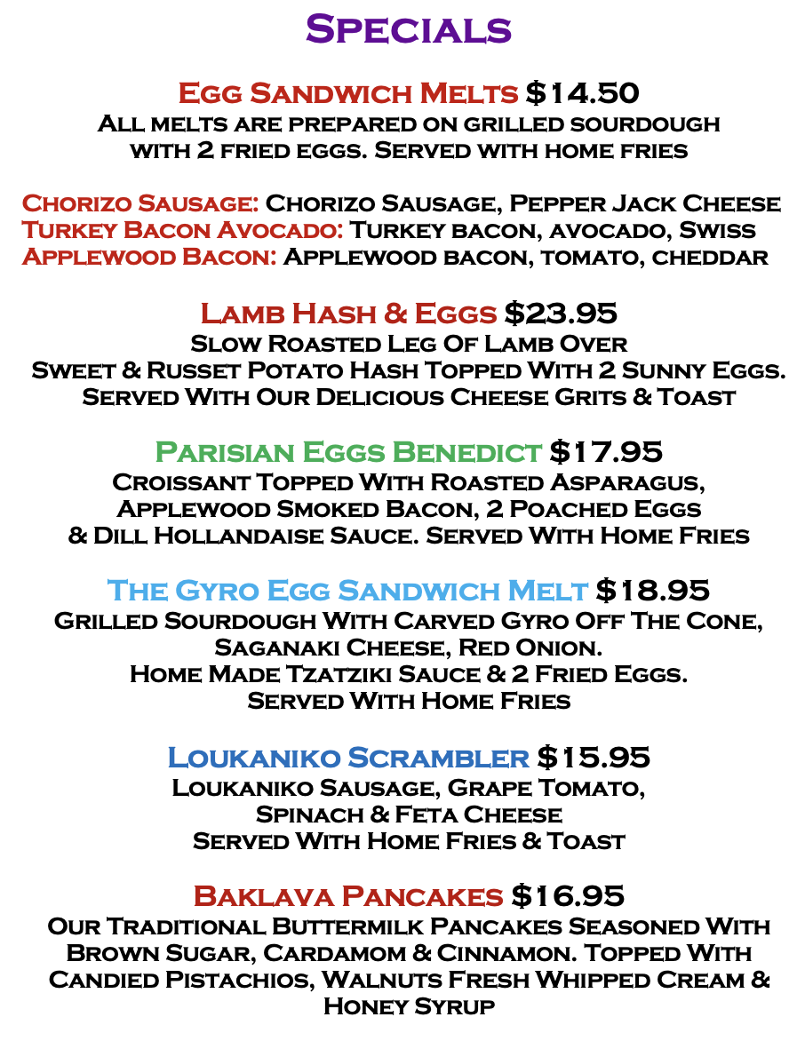 Or keep it simple with an order of ham steak and eggs cooked and served in a skillet alongside our zesty home fries and your choice of toast.